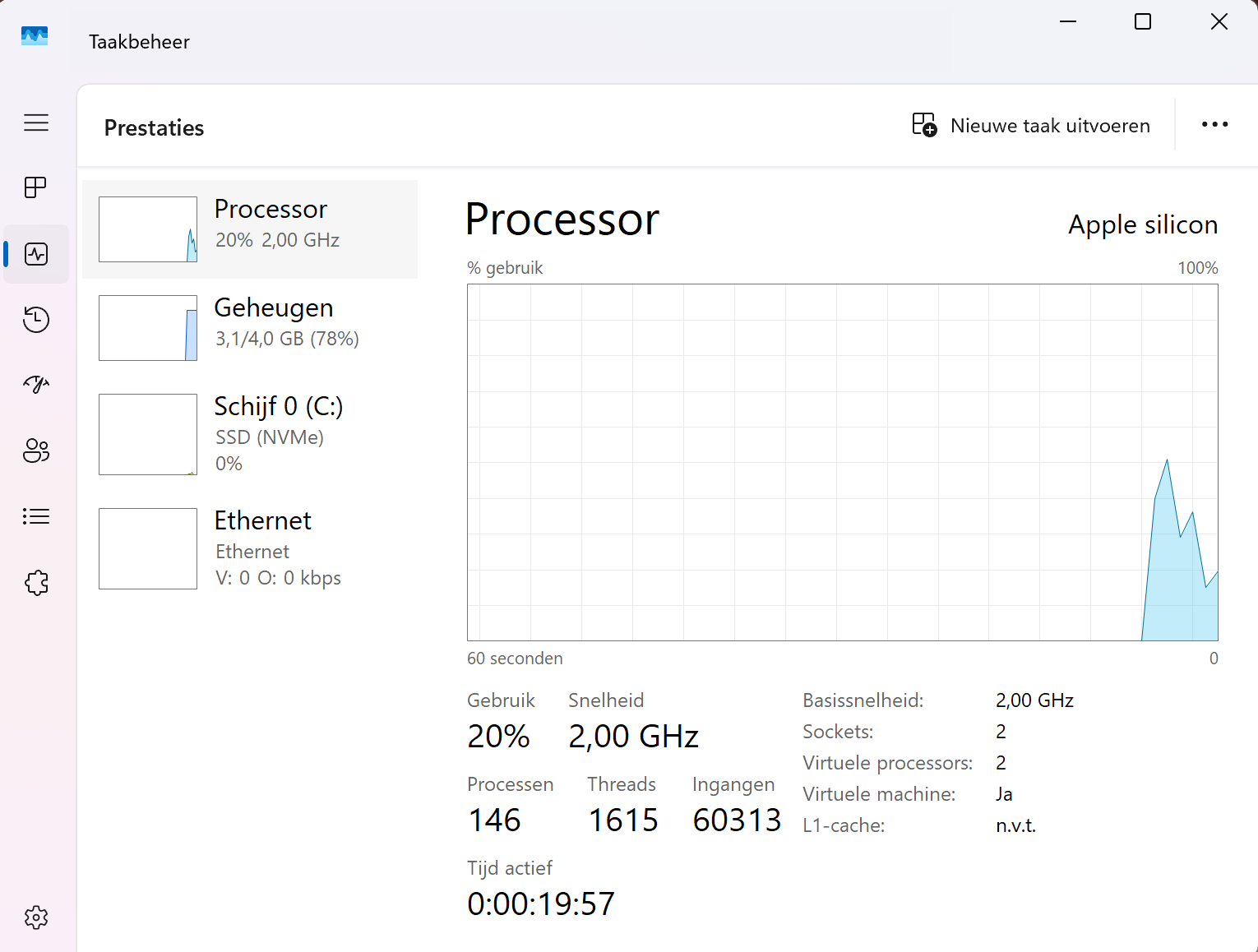 Door opnieuw op te start gaat de teller in Taakbeheer op 0:00:00:00. Dat kan snelheid problemen veroorzaken.
